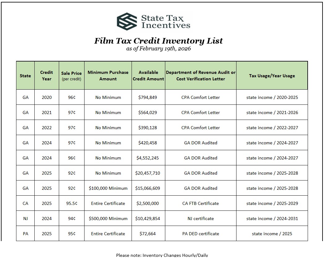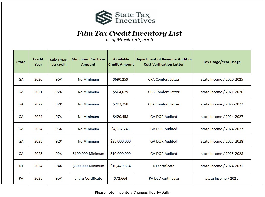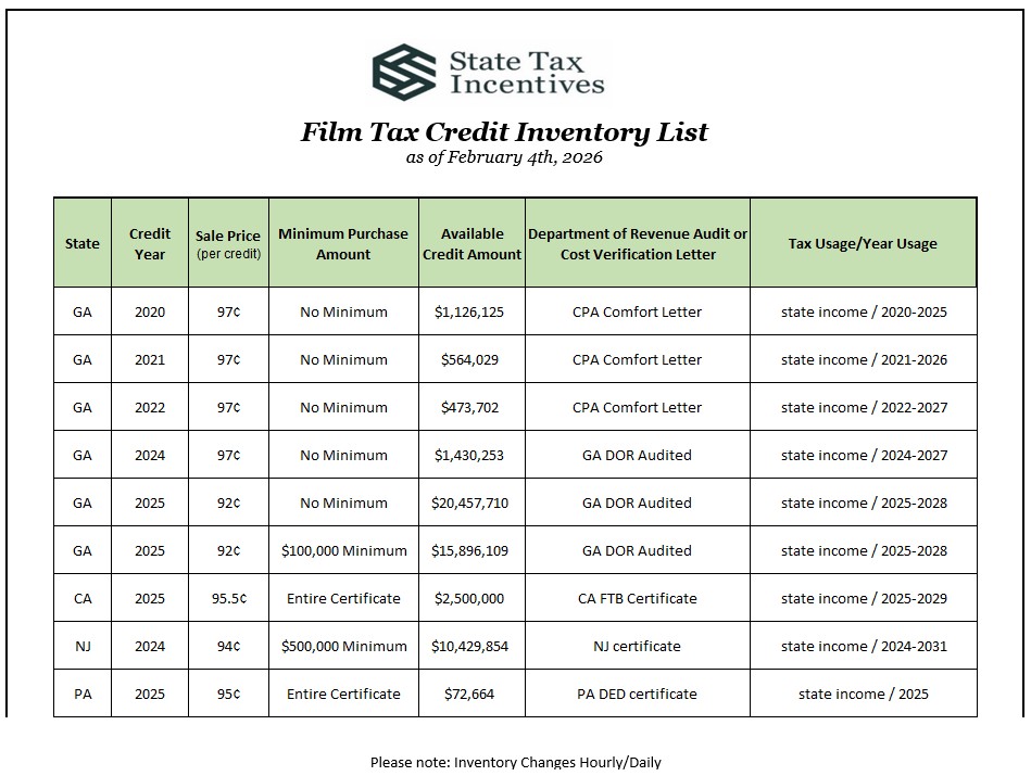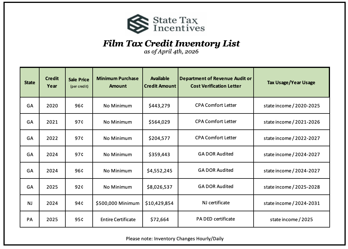 State Tax Incentives specializes in reducing income tax liability with film tax credits to save you money. To find out how much you can save, complete our tax credit calculator: